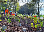 „Alle Pflanzflächen sind mit sieben Zentimeter grobem Lava-Splitt abgedeckt. Dieser ähnelt zwar stark den unökologischen Kiesgärten, ist mit diesen jedoch keineswegs vergleichbar. Die Lava soll verhindern, dass die Beete zu schnell austrocknen und sich Unkraut ansiedelt. Somit lassen sich dadurch die Unterhaltungsarbeiten für die rund 1.000 Quadratmeter große Pflanzung stark reduzieren“, so Renate Gauß, Leiterin der Abteilung Stadtgrün.